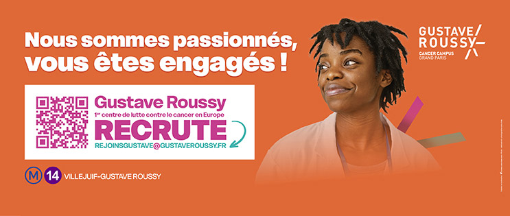 … l’opportunité de contribuer à l’excellence en matière de soins et de recherche contre le cancer. En intégrant notre hôpital et centre de recherche de renommée mondiale, vous serez au cœur d’une équipe pluridisciplinaire engagée à offrir les traitements les plus innovants. Gustave Roussy, c’est un environnement de travail où la passion pour l’humain et l’innovation se rencontrent, offrant à chacun l’opportunité de se dépasser. L’humain est au centre de nos préoccupations, tant pour les patients que pour les équipes qui bénéficient d’un accompagnement RH personnalisé. Rejoindre Gustave Roussy, c’est s’engager dans une aventure unique, où chacun et chaque action comptent. Vous partagez nos valeurs d’excellence, d’innovation et de solidarité? Venez écrire avec nous l’histoire de demain. Faites la différence, rejoignez-nous à Gustave Roussy.